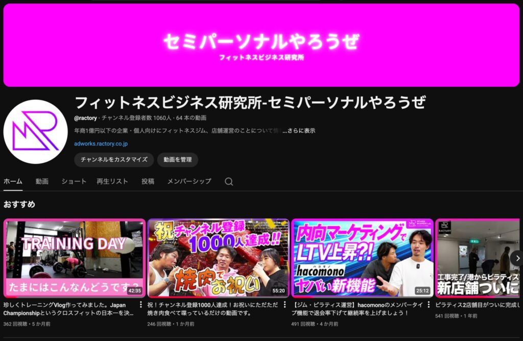 弊社代表である安田良とサイクル系YoutuberであるStradista Rusukeが運営する「フィットネスビジネス研究所」チャンネルを運営しています。